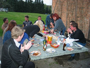 2005 Maitreffen der Absolventen von 1997 und 1998Das diesjährige Treffen fand in Markersbach statt. Die Waldschratbaude befindet sich mitten im Waldgebiet zwischen Berggießhübel und Bahratal am Rande der Sächsischen Schweiz. Wie immer trafen die ersten bereits am Freitag ein. Gut gestärkt am Vorabend ging es am Samstag in aller Frühe auf Wanderung durch die Sächsische Schweiz. Diverse Gaststätten am Wege luden zum Rasten ein und trotzdem kamen wir ziemlich geschafft am späten Nachmittag wieder in unserer Herberge an. Viele alte Gesichter kamen noch am Samstag zum Treffen und es wurde ein herrlicher Abend bei schöner Atmosphäre. Leider, wie immer, viel zu kurz, hieß es am Sonntag nach einem gemeinsamen Frühstück schon wieder Abschied nehmen. Schade, aber wir sehen uns ja wieder in 2006, diesmal in Pillnitz! | |