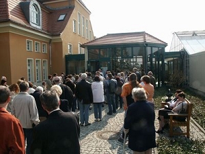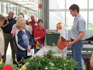 "Sommer im April" – ein solches Versprechen einzuhalten ist nur Gärtnern möglich. So geschehen am 16. und 17. April 2005 in den Versuchs- und Lehrgewächshäusern der Sächsischen Landesanstalt für Landwirtschaft und der Hochschule für Technik und Wirtschaft in Dresden-Pillnitz. Fachschüler der Pillnitzer Fachschulen für Gartenbau und Technik luden Dresdner und Gäste zu einem sommerlichen Gewächshausspaziergang an üppig blühenden Balkonkästen, Kübeln und Pflanzengestaltungen vorbei ein. Im Vorfeld wurden Gestaltungspläne entworfen, Beet- und Balkonpflanzen mit Assimilationslicht zum Wachsen und Blühen gebracht, Schaugefäße bepflanzt und regionale Werbung betrieben. Zur Seite standen den acht angehenden Wirtschaftern für Einzelhandelsgärtnerei und den 15 Technikstudenten für Gartenbau des 2. Semesters die Fachlehrer der Fachschulen sowie Mitarbeiter des Fachbereichs Gartenbau der LfL und der HTW. Eingebunden war die Ausstellung als Projektarbeit im fachübergreifenden Unterricht in den Fächern Zierpflanzenbau, Unternehmensführung und Projektarbeit an den Fachschulen. | Mit viel Einfallsreichtum und Kreativität wurden Farbwirkungen im bepflanzten Balkonkasten und vor Häuserwänden dargestellt. Hinweise zur standortgerechten Verwendung wurden ebenso gegeben, wie fachgerechte Bepflanzungen live demonstriert. Gestalterische Höhepunkte der gelungenen Ausstellung waren zweifelsohne ein fiktiver Innenhof mit bunten Balkonkästen an den (Papier-)Fenstern, Kübelpflanzen, Sandkasten und Gartenmöbel sowie die thematischen Gärten. So bot der asiatische Bereich exklusive Gestaltungen und Möglichkeiten zum Entspannen, auf der mediterranen Terrasse wurden Erinnerungen an den letzten Urlaub geweckt und im mehrere Quadratmeter füllenden Naschbalkon gab es Essbares und Gesundes aus Balkonkasten und Kübel zu entdecken. |